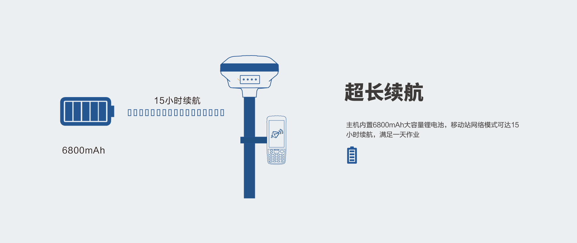內置6800mAh鋰電池,支持移動站15小時續航 |