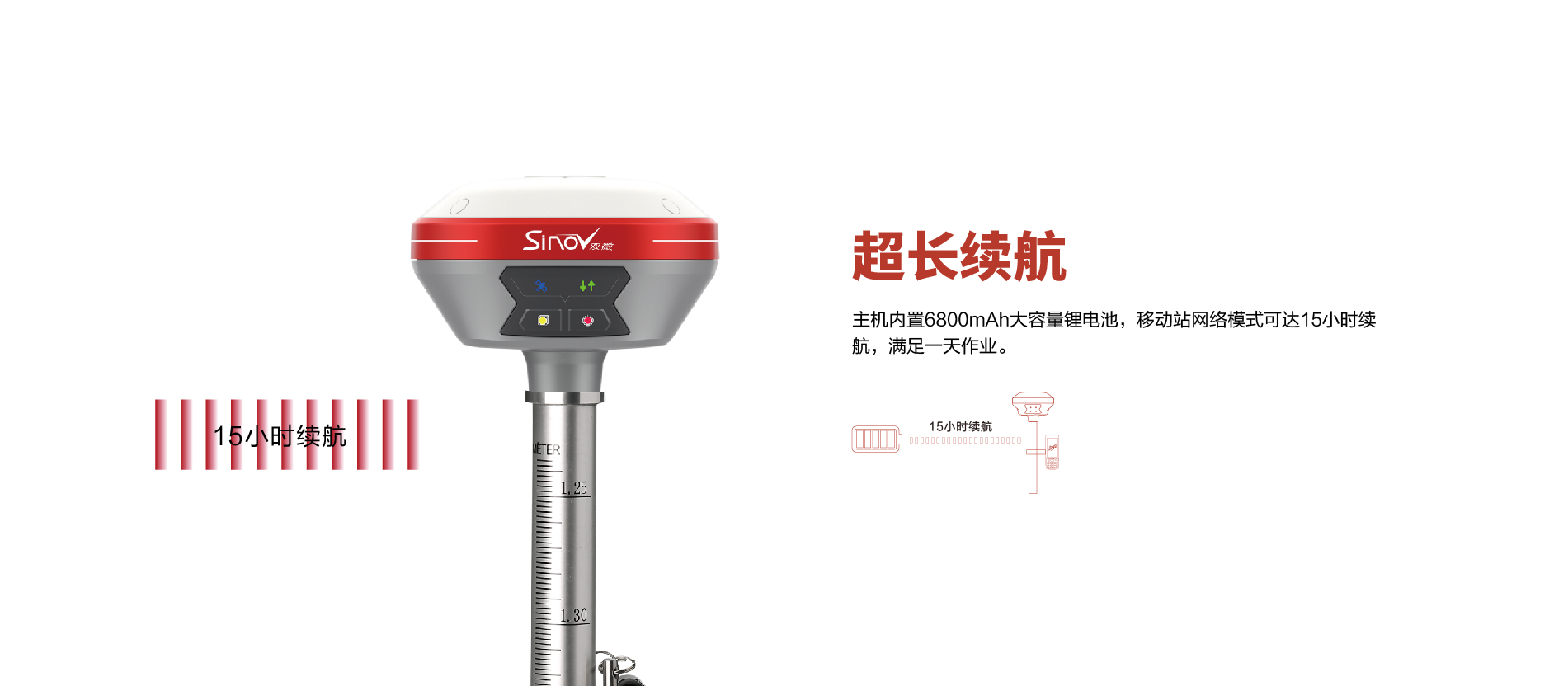 內置6800mAh鋰電池,支持移動站15小時續航 |