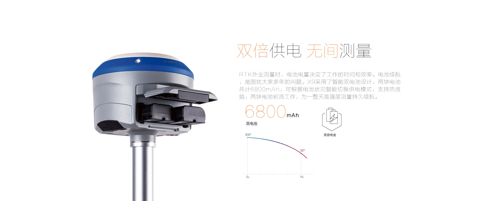 華測X9 RTK是一款收發一體電臺、4G全網通、雙電池智能供電的全功能RTK接收機。